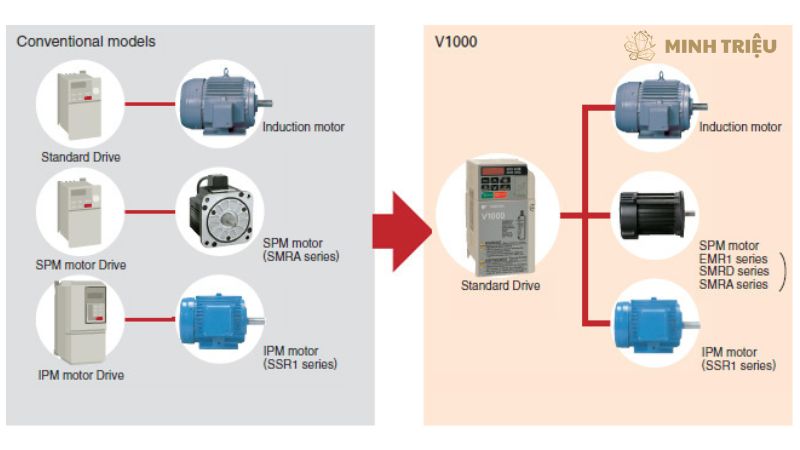Ứng dụng điển hình | Bơm, quạt, băng tải đơn giản | Máy công cụ, robot, cần trục, thang máy | Cầu trục, máy cán, máy nghiền |