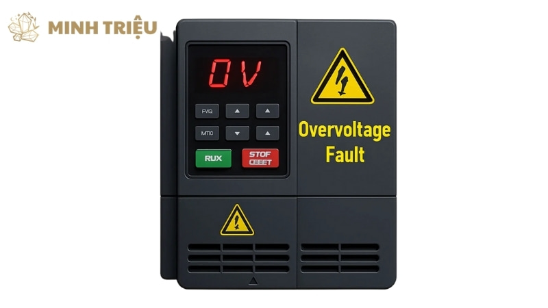 Lỗi quá áp (Overvoltage – OV) xảy ra khi điện áp DC Bus bên trong biến tần vượt quá giới hạn an toàn, thường do năng lượng phản hồi từ tải. Dấu hiệu: