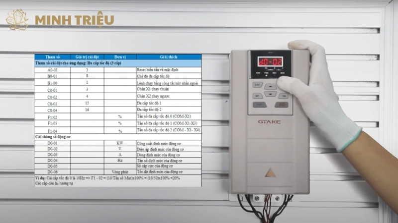 - Cài đặt đầu vào/đầu ra số (Digital I/O): Gán chức năng chính xác cho các chân I/O số (ví dụ: Start/Stop, Forward/Reverse, Fault Reset).