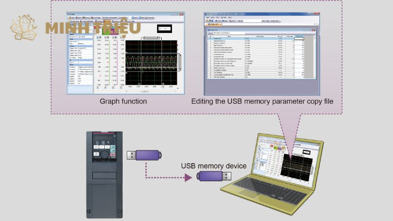 Chức năng này biến máy tính thành một “bảng điều khiển” mạnh mẽ, giúp người dùng có cái nhìn toàn diện về hoạt động của biến tần. Phần mềm hiển thị các thông số quan trọng (như tần số, dòng điện, công suất) dưới dạng biểu đồ thời gian thực, giúp người dùng dễ dàng theo dõi xu hướng và phát hiện các dao động bất thường.