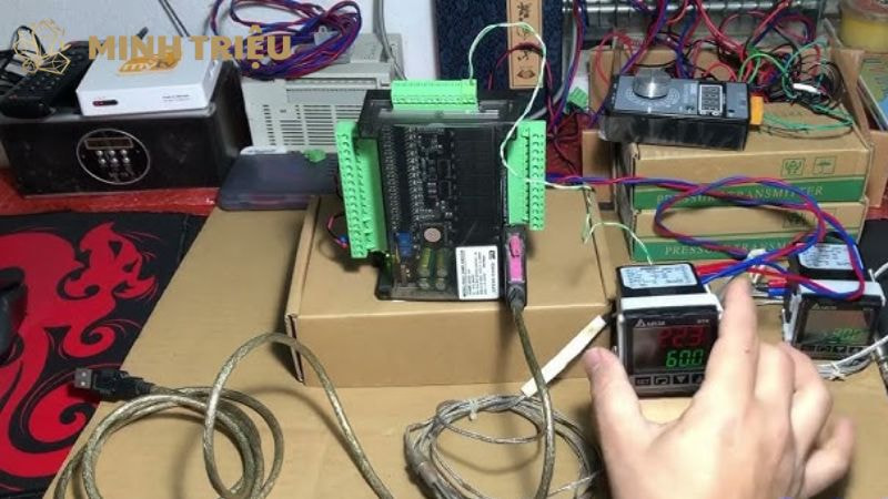• Bộ điều khiển (PLC): Bộ điều khiển PLC (Programmable Logic Controller) là “bộ não” trung tâm của hệ thống tự động hóa, nơi xử lý và điều khiển tín hiệu từ cảm biến một cách logic và chính xác. PLC được thiết kế để hoạt động trong môi trường công nghiệp khắc nghiệt, với khả năng lập trình linh hoạt để thực hiện các thuật toán điều khiển như PID hoặc logic ladder. Nó nhận tín hiệu đầu vào từ cảm biến (ví dụ: nhiệt độ, áp suất, hoặc vị trí), xử lý dựa trên chương trình đã lập, và gửi lệnh đầu ra đến các thiết bị thực thi như động cơ hoặc van. Trong giao diện cảm biến, PLC đảm bảo tín hiệu được đọc và phản hồi nhanh chóng, giúp hệ thống duy trì ổn định và giảm thiểu sai lệch.