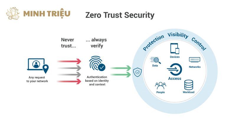 Mô hình Zero Trust dựa trên nguyên tắc “Không bao giờ tin tưởng, luôn xác minh”, biến IAM thành ranh giới bảo mật hiệu quả nhất trong môi trường Cloud phân tán. Mô hình này loại bỏ giả định tin cậy ngầm đối với người dùng hoặc thiết bị bên trong mạng, đòi hỏi mọi yêu cầu truy cập phải được xác minh và ủy quyền lại liên tục.