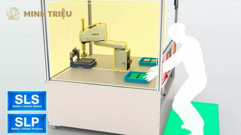 - SLP (Safe Limited Position): Đảm bảo trục Động cơ servo không bao giờ di chuyển vượt quá một phạm vi vị trí vật lý đã được xác định. Điều này ngăn chặn va chạm giữa robot với hàng rào an toàn hoặc giữa các bộ phận máy.