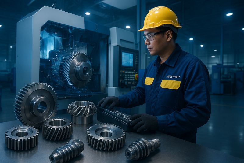 - Năng lực thiết bị: Sở hữu chuỗi máy gia công khép kín: Máy Tiện CNC -> Máy Phay CNC -> Máy Phay Lăn Răng (Hobbing) -> Máy Xọc Răng (Shaping) -> Máy Mài Răng.