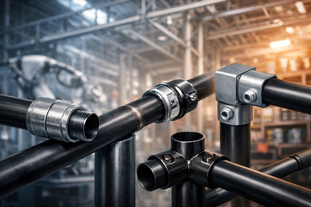 Đây là bước tiến trong giải pháp cơ khí hiện đại. Khớp nối nhanh cho phép liên kết các đoạn ống chỉ bằng các thao tác khóa đơn giản. Loại này cực kỳ được ưa chuộng trong hệ thống giàn giáo xây dựng, khung kệ kho bãi hoặc các kết cấu cần tháo lắp thường xuyên.