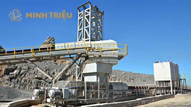 • Cửa xả Băng tải Sơ cấp: Đặt ngay dưới máy nghiền sơ cấp (Primary Crusher) để chịu lực va đập trực tiếp từ tảng đá lớn.