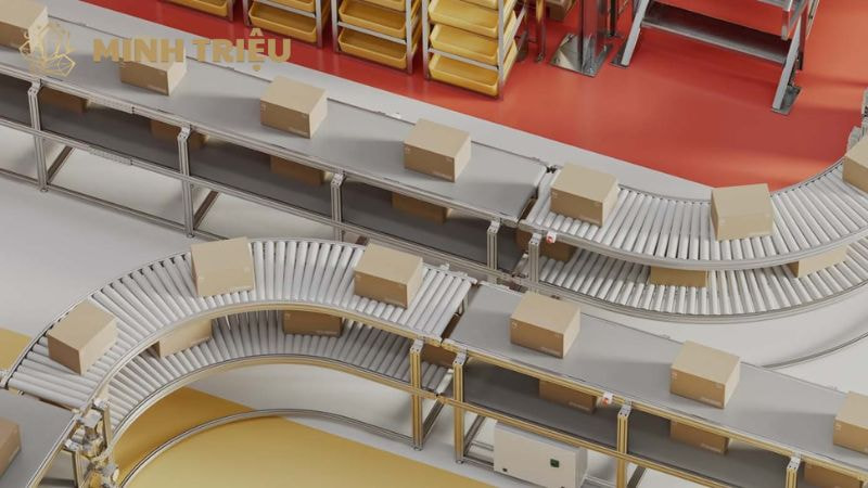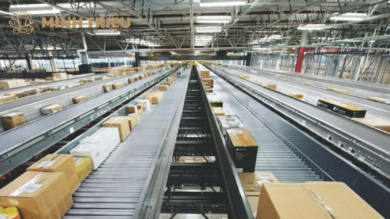 - Logistics kho bãi và Trung tâm Phân phối: Trong môi trường E-commerce, hiệu suất sản xuất và tốc độ là yếu tố sống còn. Hệ thống băng tải tự động tốc độ cao, kết hợp với các bộ Sorter (phân loại tự động) và ASRS (hệ thống lưu trữ và truy xuất tự động), là nền tảng để xử lý hàng nghìn kiện hàng mỗi giờ.