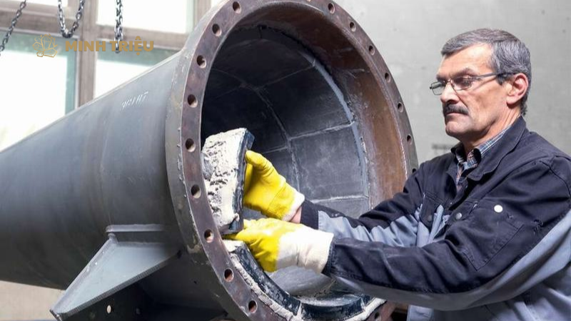 3. Bôi keo: Keo dán hai thành phần được trộn theo tỷ lệ chính xác và bôi lên bề mặt đã mài nhám.