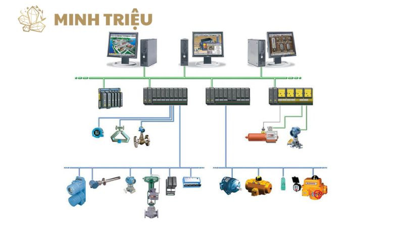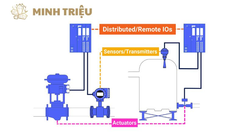 Thiết bị trường thông minh (Smart Field Devices): Cấu trúc tổng thể của hệ thống DCS hiện đại đã tích hợp các thiết bị trường thông minh. Các thiết bị này không chỉ đo lường hoặc điều khiển mà còn có khả năng tự xử lý dữ liệu và giao tiếp hai chiều với hệ thống điều khiển. Điều này cho phép hệ thống DCS thu thập thông tin chẩn đoán chi tiết về tình trạng của thiết bị (như tuổi thọ, tình trạng pin, các lỗi tiềm ẩn), giúp việc bảo trì trở nên chủ động và hiệu quả hơn.