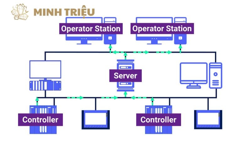 Máy chủ (Servers): Máy chủ chịu trách nhiệm thu thập, xử lý và lưu trữ dữ liệu từ tất cả các LCU. Chúng đóng vai trò là kho lưu trữ dữ liệu lịch sử (Historical Database) về các biến quá trình, các sự kiện và cảnh báo. Dữ liệu này cực kỳ quan trọng cho việc phân tích hiệu suất, tối ưu hóa quy trình và khắc phục sự cố.