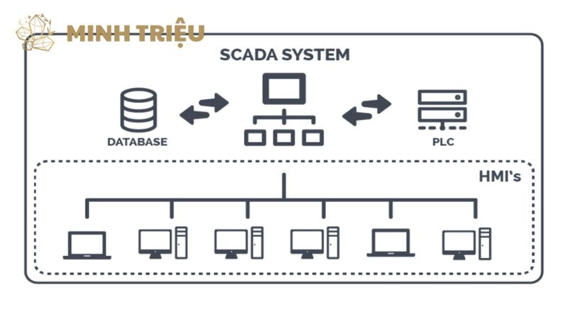 - Master Terminal Unit (MTU): Máy chủ trung tâm, nơi đặt phần mềm SCADA.