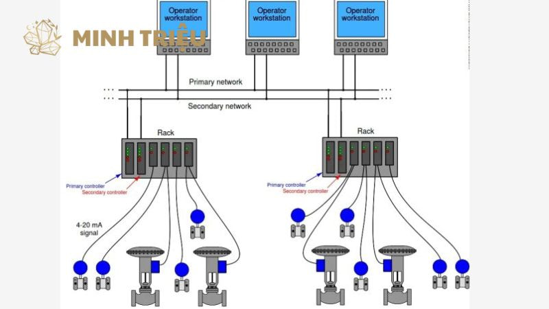 - Hệ thống an toàn (Safety Instrumented System – SIS): Đây là một hệ thống độc lập với DCS, được thiết kế để đưa quy trình về trạng thái an toàn trong trường hợp khẩn cấp. Hệ thống SIS có độ tin cậy cực cao và thường chỉ kích hoạt khi các thông số vượt quá giới hạn an toàn, bảo vệ con người, môi trường và tài sản.