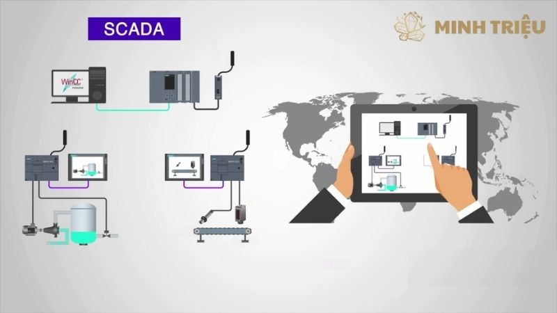 SCADA (Supervisory Control and Data Acquisition) là hệ thống giám sát, điều khiển và thu thập dữ liệu tập trung, được thiết kế để quản lý các quy trình công nghiệp phức tạp. SCADA cho phép kết nối giữa các thiết bị hiện trường (cảm biến, bộ điều khiển logic PLC, RTU) và trung tâm điều khiển, nơi dữ liệu được hiển thị trực quan trên giao diện người dùng.