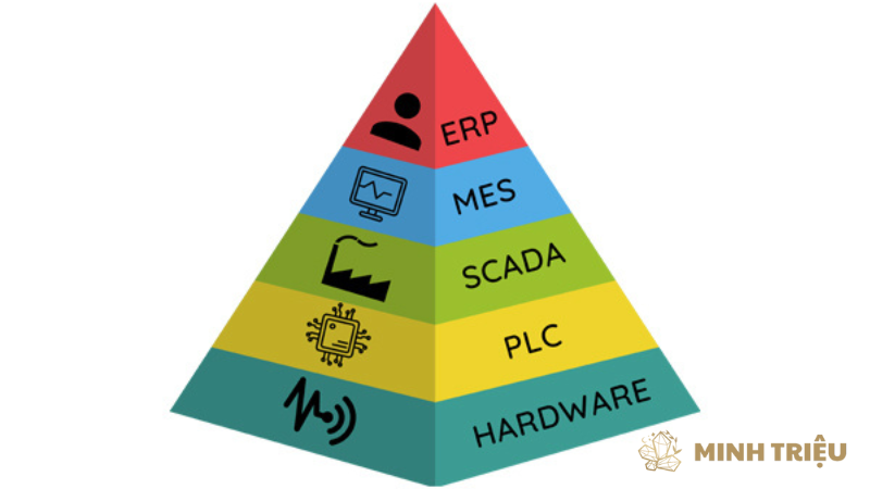 Hệ thống này cũng theo dõi tiến độ công việc, quản lý chất lượng, thu thập dữ liệu về hiệu suất thiết bị và báo cáo các thông tin này lên tầng trên. MES là hệ thống quản lý tự động hóa cấp trung, tập trung vào việc đảm bảo các đơn hàng sản xuất được hoàn thành đúng thời gian và tiêu chuẩn. Hệ thống ERP (Enterprise Resource Planning) là một hệ thống quản lý toàn bộ nguồn lực của doanh nghiệp. ERP hoạt động ở tầng quản lý cao nhất, bao gồm các nghiệp vụ như tài chính, kế toán, quản lý chuỗi cung ứng, kho bãi, nhân sự và bán hàng.