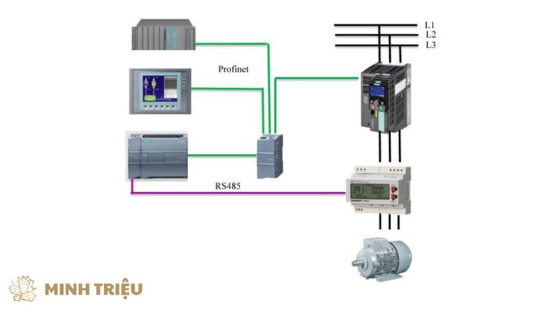 Ngoài ra, PROFINET cung cấp chẩn đoán mạnh mẽ , giúp dễ dàng quản lý và xử lý lỗi mạng. Nhược điểm là PROFINET chủ yếu phổ biến với các biến tần và HMI của Siemens, và việc triển khai có thể phức tạp hơn với các hãng khác. Ứng dụng tiêu biểu của PROFINET là trong các hệ thống Siemens toàn diện, nơi yêu cầu điều khiển động cơ với độ chính xác và đồng bộ cao.
