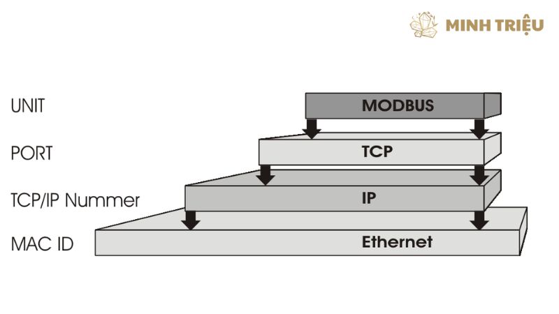 Unit Identifier đóng vai trò như địa chỉ Slave trong mạng Modbus RTU được “đóng gói” (encapsulated) qua gateway, cho phép Client định tuyến đến thiết bị Slave cụ thể nằm phía sau một Modbus Gateway. Modbus TCP/IP luôn sử dụng cổng TCP (Port) tiêu chuẩn 502 để thiết lập phiên giao tiếp tin cậy giữa Client và Server, đảm bảo các gói tin được gửi đi theo thứ tự và được xác nhận đã nhận (acknowledgement).