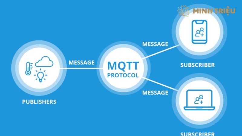 MQTT thực hiện một mô hình giao tiếp không đồng bộ (asynchronous communication) dựa trên thông điệp, tách biệt hoàn toàn người gửi (Publisher – thường là Cảm biến và Actuators) và người nhận (Subscriber – thường là Nền tảng IIoT và ứng dụng giám sát), qua đó tối ưu hóa Scalability và giảm thiểu sự phụ thuộc lẫn nhau giữa các thành phần.
