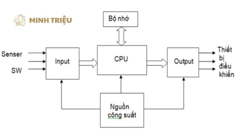 Một PLC điển hình bao gồm nhiều thành phần cốt lõi hoạt động hài hòa để thực hiện chức năng điều khiển. Các thành phần chính của một PLC bao gồm Bộ xử lý trung tâm (CPU), Bộ nhớ (Memory), Module vào/ra (Input/Output Modules – I/O), và Bộ nguồn (Power Supply).