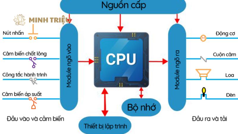 CPU liên tục đọc tín hiệu từ các module đầu vào, xử lý dữ liệu theo chương trình đã được lập trình, và sau đó gửi tín hiệu điều khiển tới các module đầu ra. Hiệu suất của CPU (tốc độ xử lý, khả năng tính toán) quyết định khả năng điều khiển các quy trình nhanh và phức tạp của PLC.