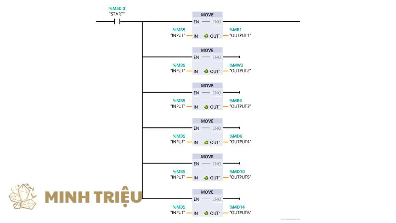 - Sử dụng kèm điều kiện: Lệnh MOV thường được kích hoạt bởi một điều kiện đầu vào (ví dụ: một tiếp điểm thường mở/đóng, một bit cờ) để điều khiển chính xác thời điểm dữ liệu được di chuyển. Không nên để lệnh MOV hoạt động tự do trong mỗi chu kỳ quét trừ khi đó là mục đích đã định.