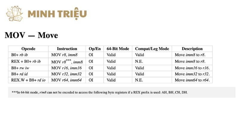 3. Các Biến Thể và Lệnh Liên Quan Của Lệnh MOV