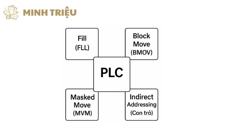 Ngoài lệnh MOV cơ bản, các PLC còn cung cấp các lệnh di chuyển dữ liệu nâng cao để xử lý các tác vụ phức tạp hơn: