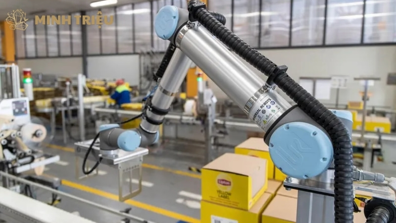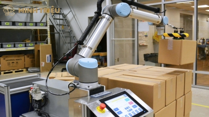 • Đóng gói và Xếp dỡ: Tự động hóa việc đóng gói sản phẩm vào hộp, xếp các sản phẩm lên pallet (palletizing), giải phóng nhân viên khỏi các công việc lặp lại, nhàm chán.