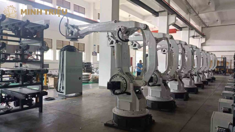 - Đặc điểm: Robot tải trọng nặng được thiết kế với cấu trúc vững chắc, khả năng chịu lực cao và tầm với lớn. Chúng có thể xử lý các vật liệu và cụm chi tiết có khối lượng đáng kể, thường xuyên hoạt động trong môi trường công nghiệp khắc nghiệt.