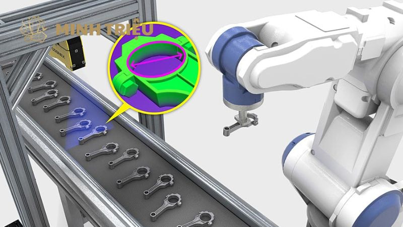 - Robot định hướng (Robot Guidance) cho các tác vụ Pick & Place: Trong kho hàng hoặc trên dây chuyền lắp ráp, robot cần biết chính xác tọa độ (x,y,z) và hướng (Orientation) của linh kiện để gắp và đặt. Các mô hình YOLO và Faster R-CNN cung cấp tọa độ 2D chính xác, thường được kết hợp với thị giác 3D để đưa ra hướng dẫn hành động cho robot.