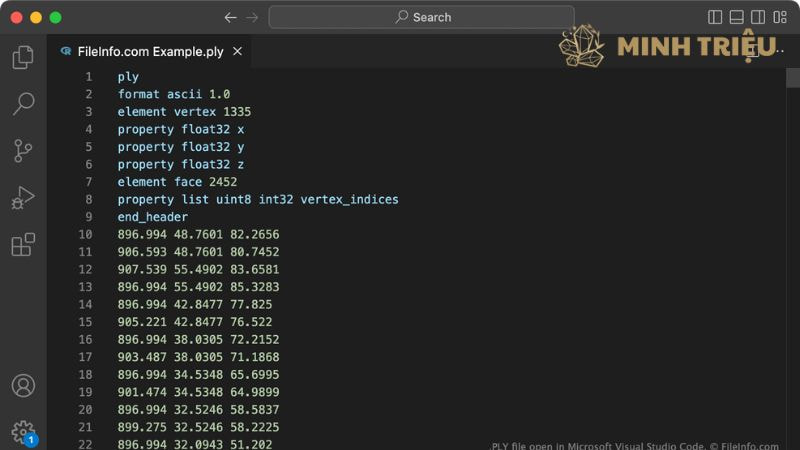 - PLY (Polygon File Format/Stanford Triangle Format): Định dạng linh hoạt, hỗ trợ cả dữ liệu Point Cloud và Lưới Tam Giác, thường lưu trữ thông tin về tọa độ, màu sắc và pháp tuyến.